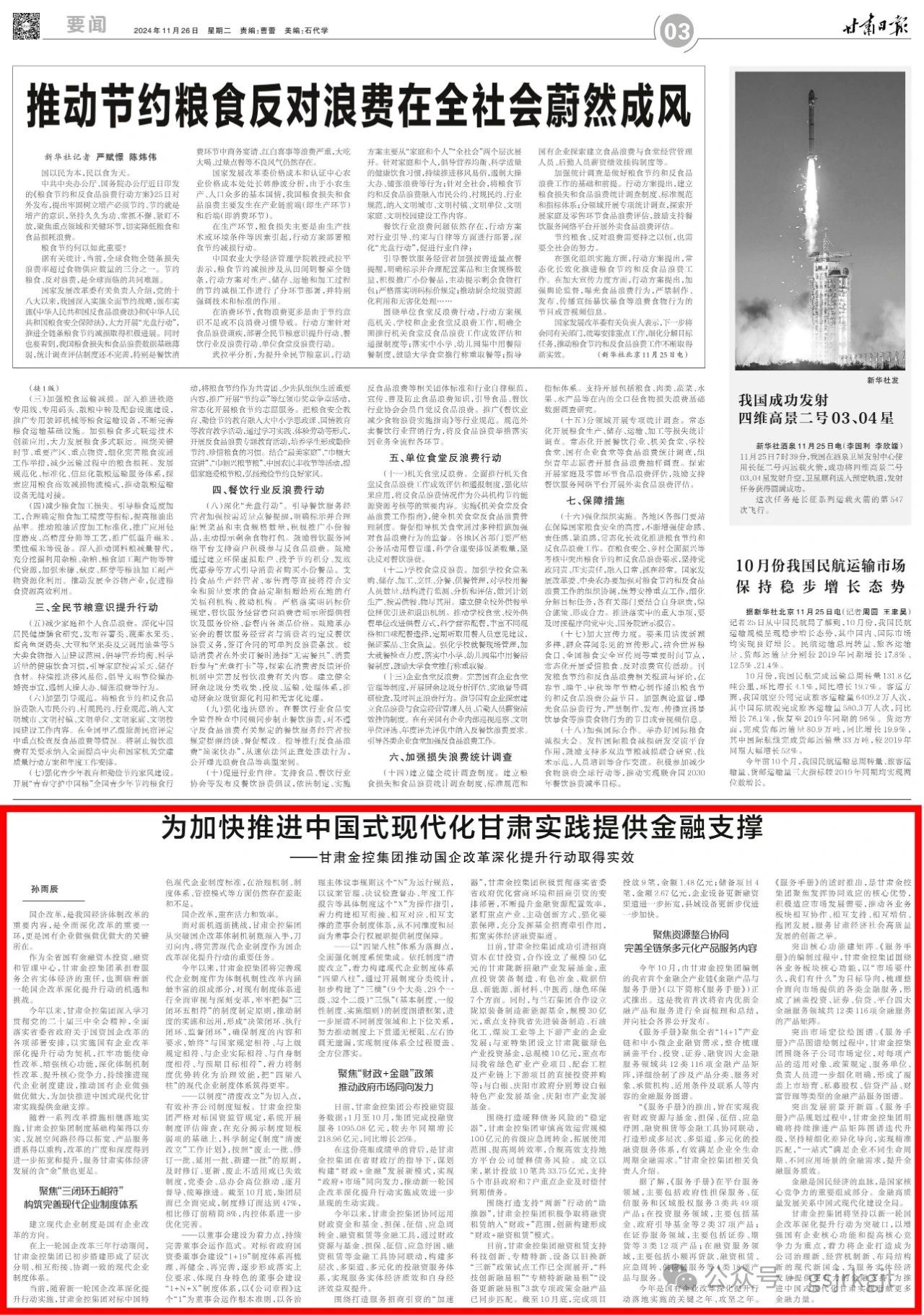 今年以來,甘肅金控集團深入學(xué)習(xí)貫徹黨的二十屆三中全會精神,全面落實省委省政府關(guān)于國資國企改革的各項部署安排,以實施國有企業(yè)改革深化提升行動為契機,扛牢功能使命性改革、增強核心功能,深化體制機制性改革、提升核心競爭力,持續(xù)推進現(xiàn)代企業(yè)制度建設(shè),推動國有企業(yè)做強做優(yōu)做大,為加快推進中國式現(xiàn)代化甘肅實踐提供金融支撐。