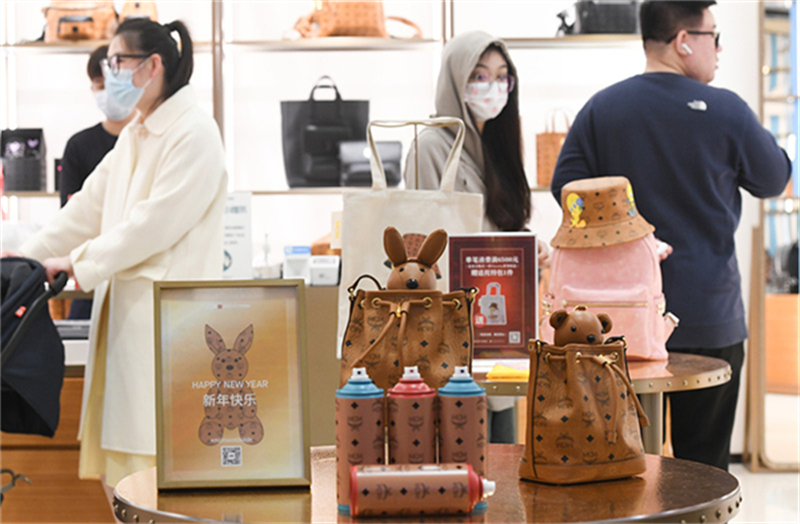 1月25日,游客在中免集團(tuán)??谌赵聫V場(chǎng)免稅店選購(gòu)免稅商品。新華社記者 楊冠宇 攝
