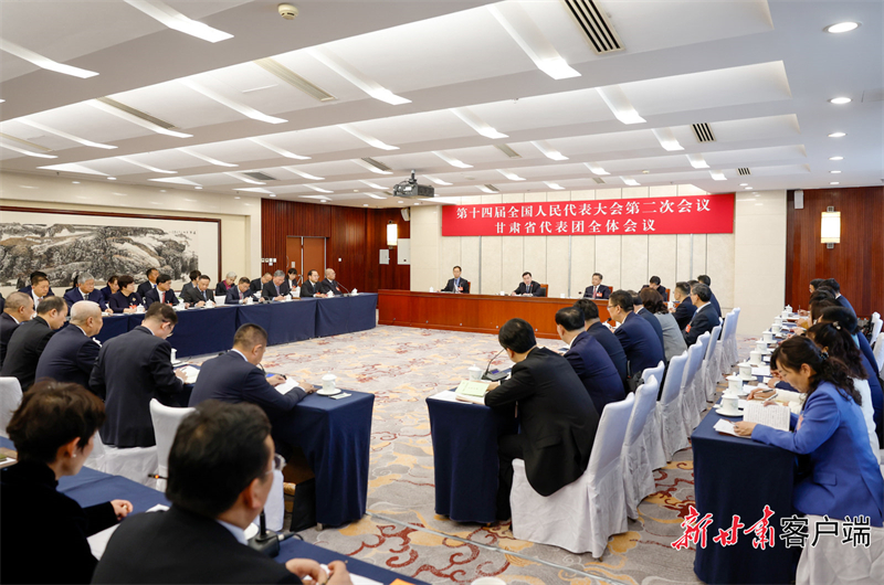 十四屆全國人大二次會(huì)議甘肅代表團(tuán)3月3日在駐地召開會(huì)議。全國人大代表、省委書記、省人大常委會(huì)主任胡昌升主持會(huì)議。