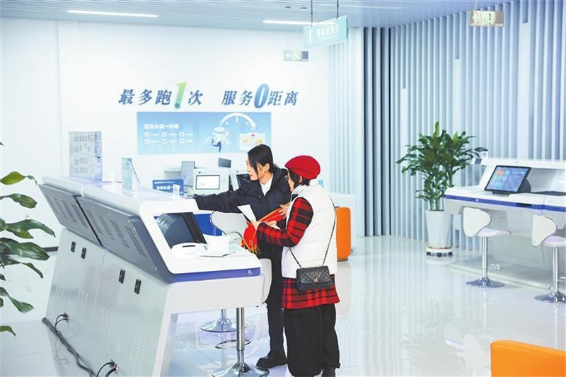 “我們實施了‘減證便民’專項行動,推動177項‘免證明’事項落地,累計取消證明材料232項,通過數(shù)據(jù)共享實現(xiàn)申報表單電子化、電子證照免提交,累計辦理業(yè)務15.8萬余件?!苯鸩姓辗罩行挠嘘P負責人說。