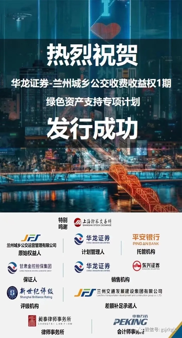 日前,由金控?fù)?dān)保作為保證人、華龍證券擔(dān)任計劃管理人的“蘭州城鄉(xiāng)公交收費(fèi)收益權(quán)1期綠色資產(chǎn)支持專項計劃”成功發(fā)行,這也是甘肅首單綠色資產(chǎn)支持專項計劃。