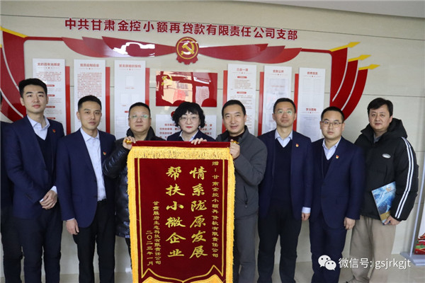 近日,甘肅勝巖生態(tài)科技有限責(zé)任公司將一面印有“情系隴原發(fā)展,幫扶小微企業(yè)”的錦旗送到甘肅金控再貸款公司,對(duì)金控再貸款公司克服疫情影響,提供優(yōu)質(zhì)、高效、貼心的金融服務(wù)表示感謝。
