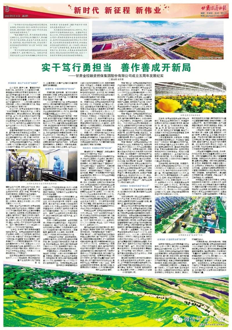 風(fēng)雨兼程里銘刻奮發(fā)向上的印記,守正創(chuàng)新中開啟奮楫揚(yáng)帆的遠(yuǎn)征。自2018年5月成立以來(lái),甘肅金控融資擔(dān)保集團(tuán)股份有限公司深入貫徹落實(shí)國(guó)家和省委省政府政策要求,按照甘肅金融控股集團(tuán)有限公司工作部署,充分發(fā)揮政府性融資擔(dān)保作用,積極健全政府性融資擔(dān)保體系,進(jìn)一步拓寬小微企業(yè)和“三農(nóng)”主體融資渠道,服務(wù)全省重大戰(zhàn)略、重要產(chǎn)業(yè)、重點(diǎn)項(xiàng)目,以覆蓋全省的融資擔(dān)保服務(wù)匯聚起惠企強(qiáng)農(nóng)的磅礴力量,走出了一條具有甘肅特色的政府性融資擔(dān)保路徑。