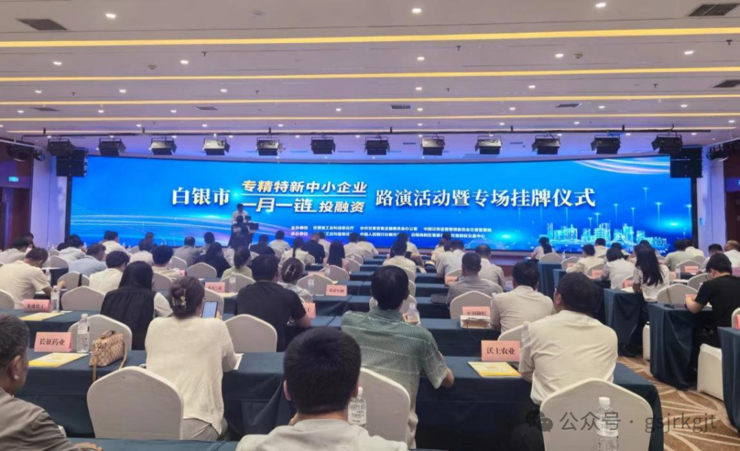 近日,在“白銀企業(yè)家日”系列活動(dòng)期間,白銀市專精特新中小企業(yè)“一月一鏈”投融資路演暨融資對(duì)接活動(dòng)成功舉行。該活動(dòng)由省工信廳、省委金融辦、證監(jiān)會(huì)甘肅監(jiān)管局主辦,白銀市工信局、人民銀行白銀中心支行、甘肅股權(quán)交易中心等承辦,白銀市各縣區(qū)工信局、各銀行業(yè)金融機(jī)構(gòu)、專精特新企業(yè)代表共 110 多人參與活動(dòng)。